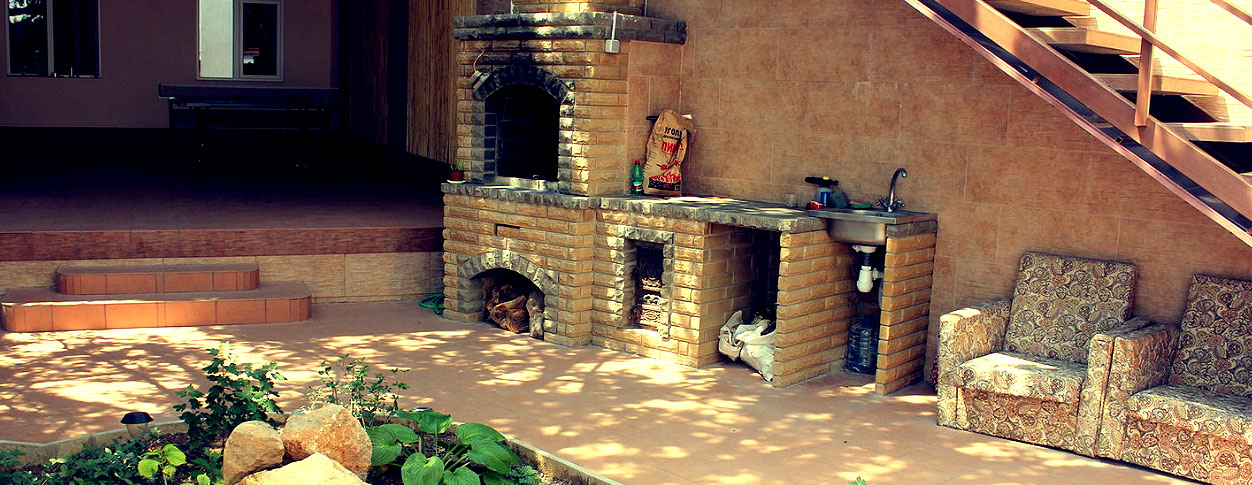 Мангал имеет оборудованный дымоход, поэтому копоть и гарь не помешают ни вам, ни другим отдыхающим, а аромат готовящегося мяса на огне наполнит внутренний дворик с беседкой,  а значит, гости отеля всегда будут довольны и  уверены в безопасности отдыха.